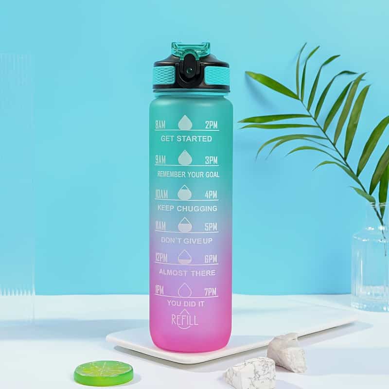 This sports water bottle combines a modern gradient design with practical features, making it perfect for everyday use. The frosted finish adds a sleek look while ensuring a comfortable grip.