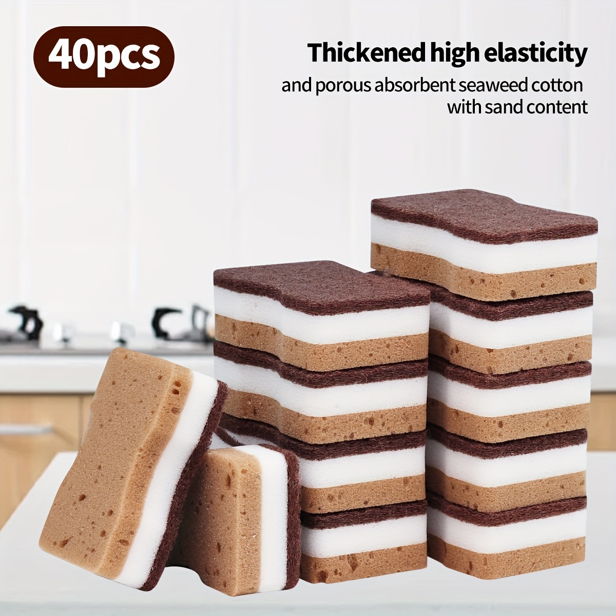 5/10/20/40pcs Seaweed Cleaning Sponges Non Scratch Kitchen Scrub Pads Set