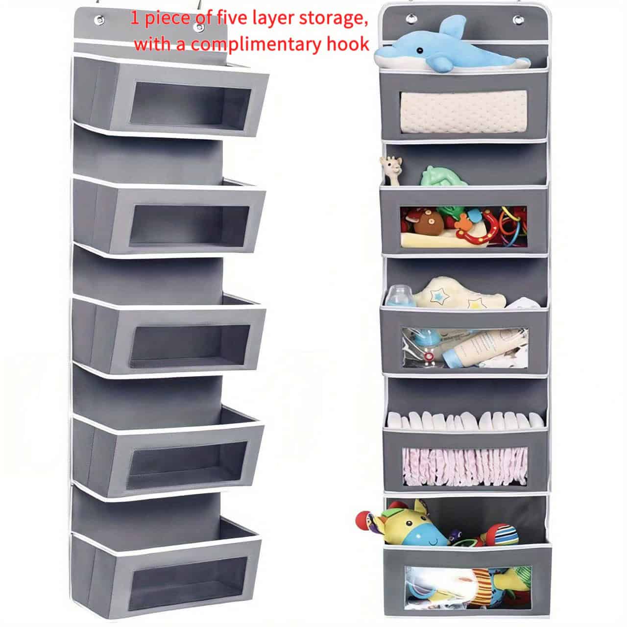 This 5-tier hanging storage rack is designed to maximize unused space behind doors. It offers a practical way to keep your home organized without taking up valuable floor space.