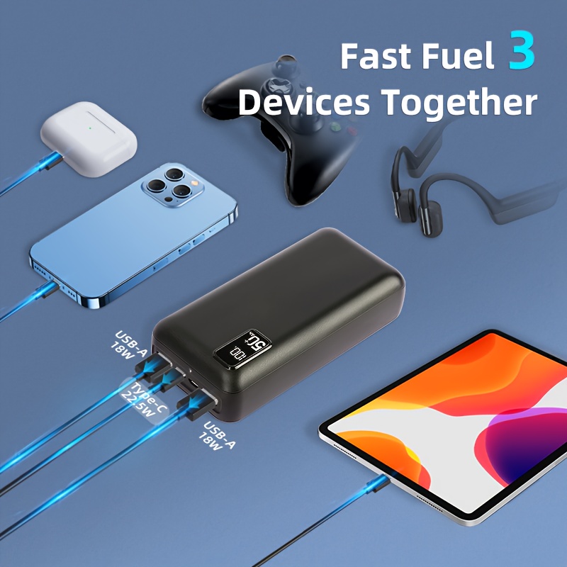 50000 MAh External Battery Portable Charger, USB Power Bank 22.5W, PD3.0 Quick Charge Function, 3 Inputs And 3 Outputs, Mobile Phone Charger Battery Compatible With IPhone, Samsung, Huawei, IPad Etc
