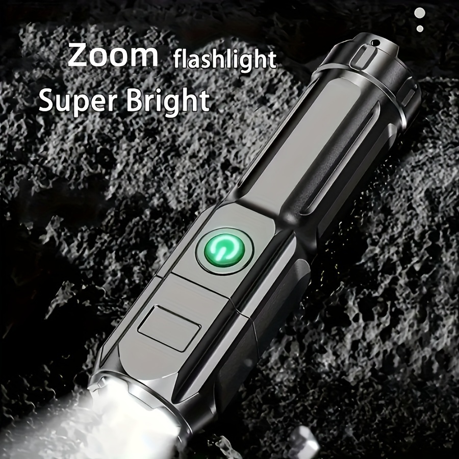 Stay prepared with this powerful zoomable LED flashlight. Compact, portable, and IPX4 water resistant, it delivers adjustable focus for camping, emergencies, and everyday use.