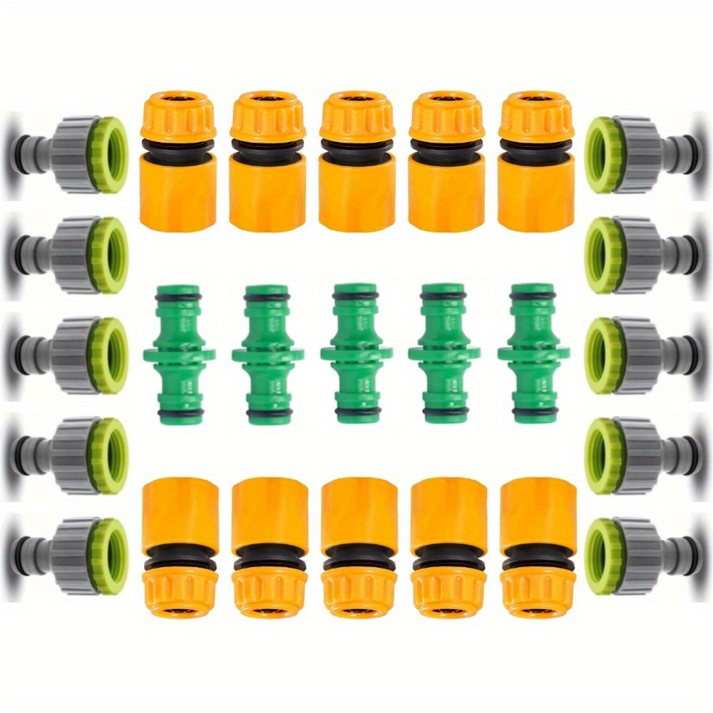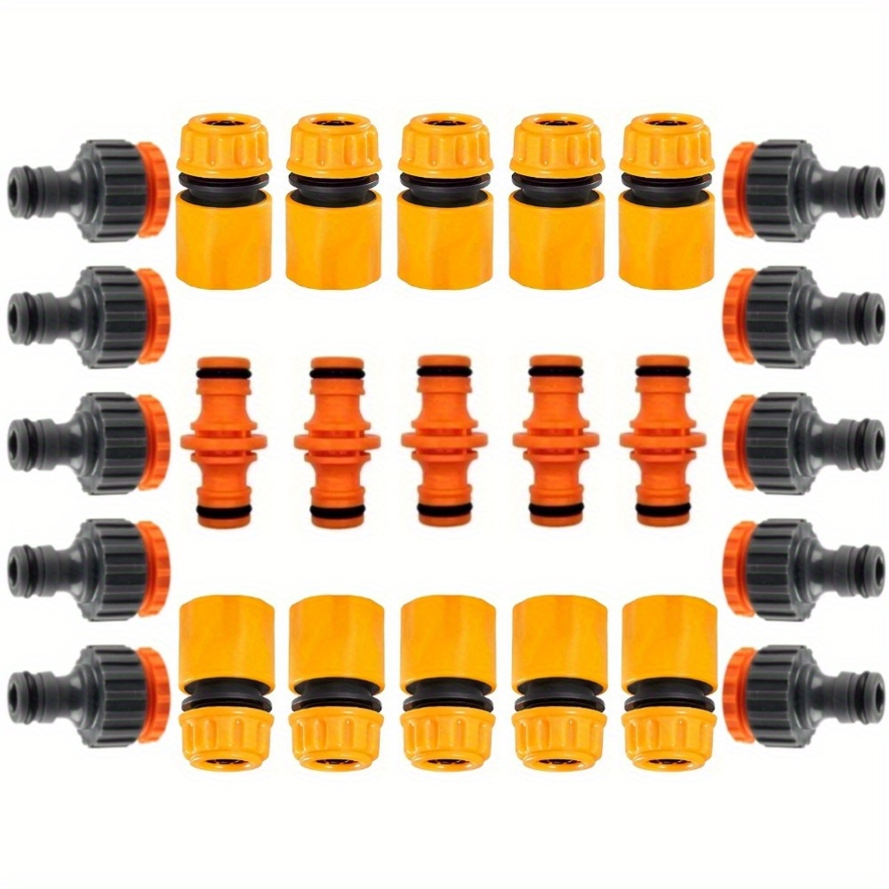 This 25pcs garden hose connector set includes tap connectors, flow connectors, and 2-way couplings for easy hose extension and irrigation. Ideal for watering plants, lawn care, and garden watering systems, the quick connect fittings ensure fast installation and reliable outdoor watering.