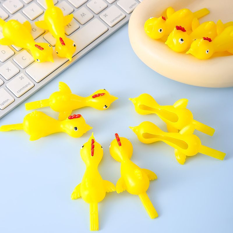 Add laughter to playtime with this flying slingshot chicken toy set. Made from stretchy rubber, these fun toys can be launched into the air for endless entertainment. Perfect for party favors, classroom rewards, and fun gifts for kids.
