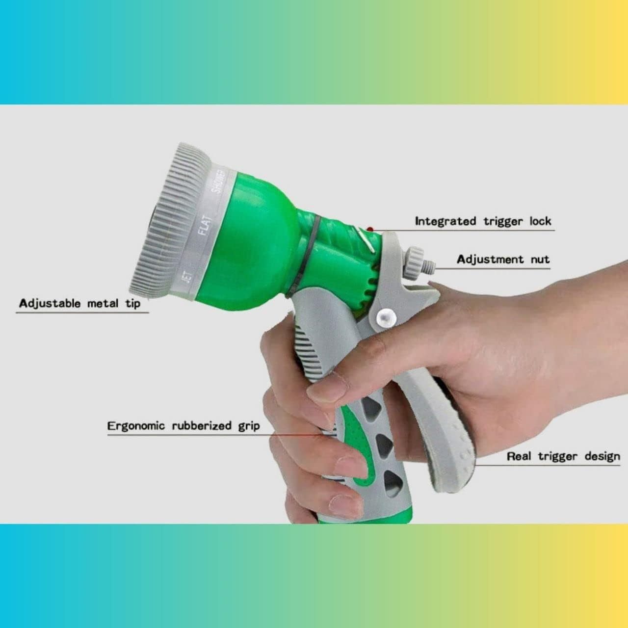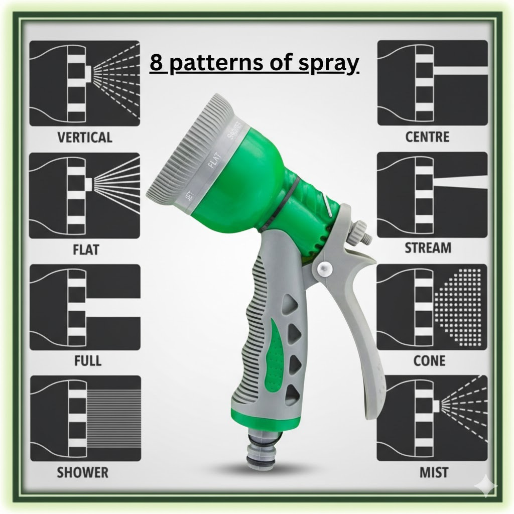 8 Pattern High Pressure Heavy Duty Hose Sprayer with Adjustable Metal Tip – HosePipe Water Shower Gun for Gardening and Car wash