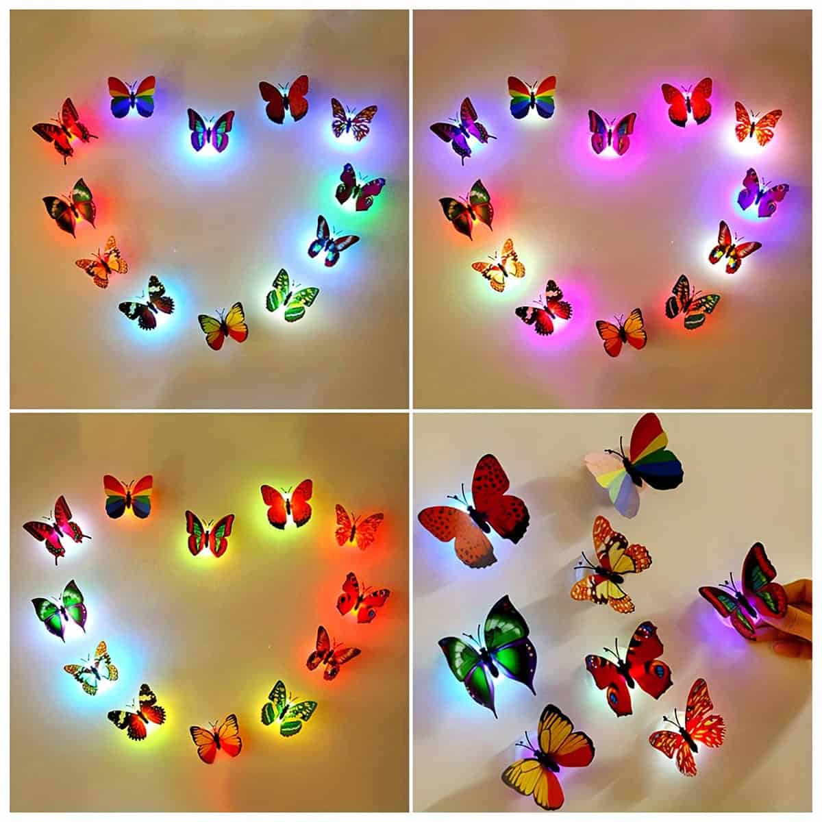 These luminous butterflies absorb light during the day and gently glow at night, creating a calming and enchanting atmosphere. Ideal for bedrooms, nurseries, and romantic decorative setups, they provide a soothing visual experience without being overpowering.