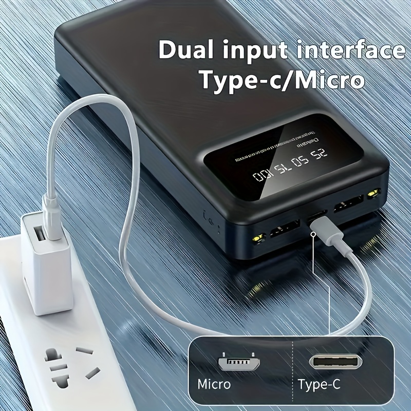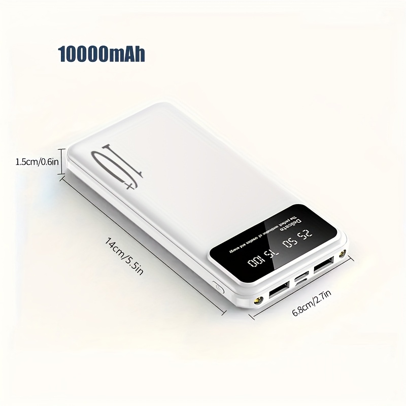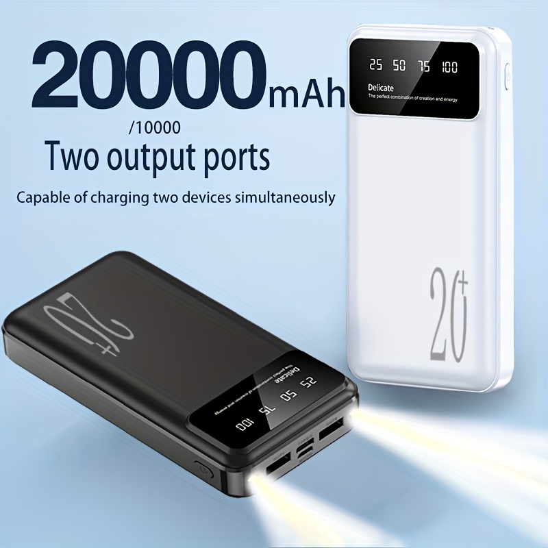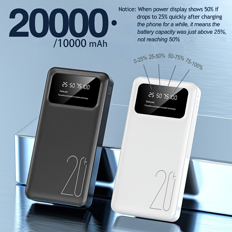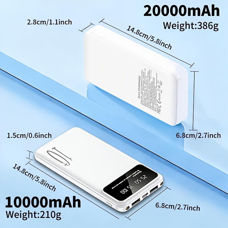 A Portable Power Bank with a Capacity of 20000-10000Mah, Featuring Dual LED Lights, Dual Input/Output Options, And a Large LED Power Indicator. This Portable Phone Charger Is Compatible with for iphone 15 Pro/14Max/13/12 Models And Android Devices (