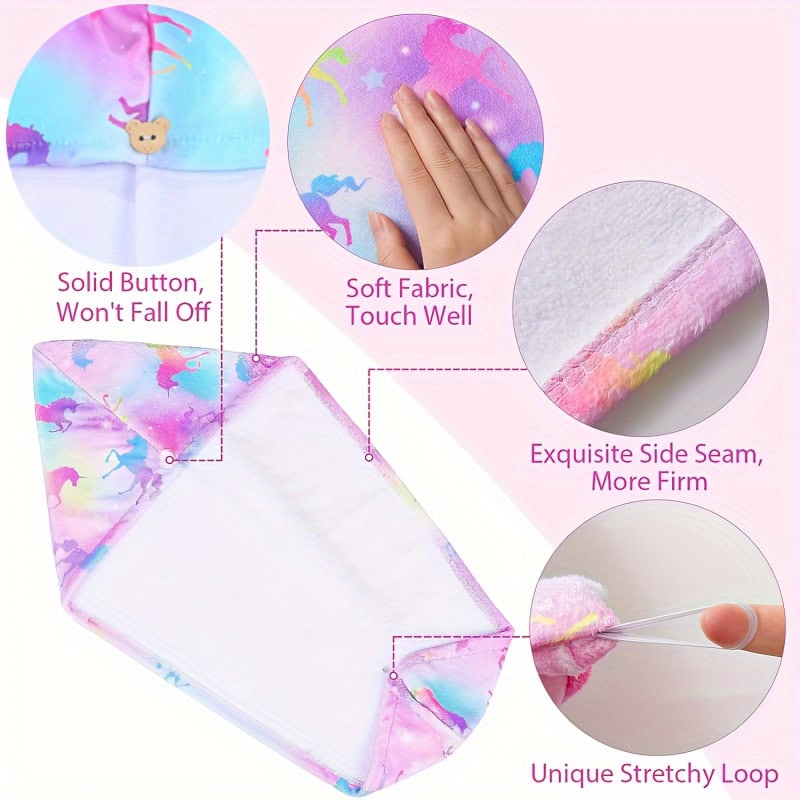 Featuring cute cartoon patterns and bright colour choices, this towel wrap adds personality and fun to your bathroom routine. Available in pink, green, purple, yellow, orange, red, brown, and more.
