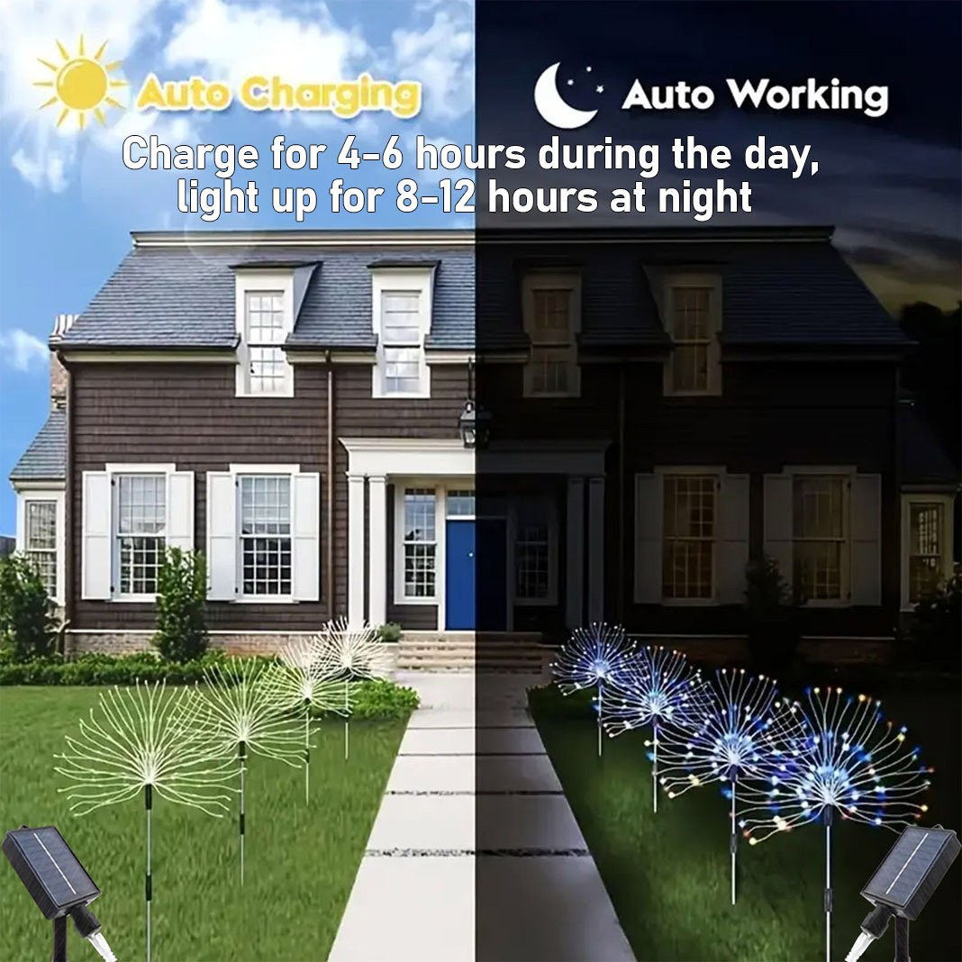 These solar fireworks lights combine creativity and functionality, making them a perfect choice for anyone looking to upgrade their outdoor lighting with vibrant and eye-catching effects.