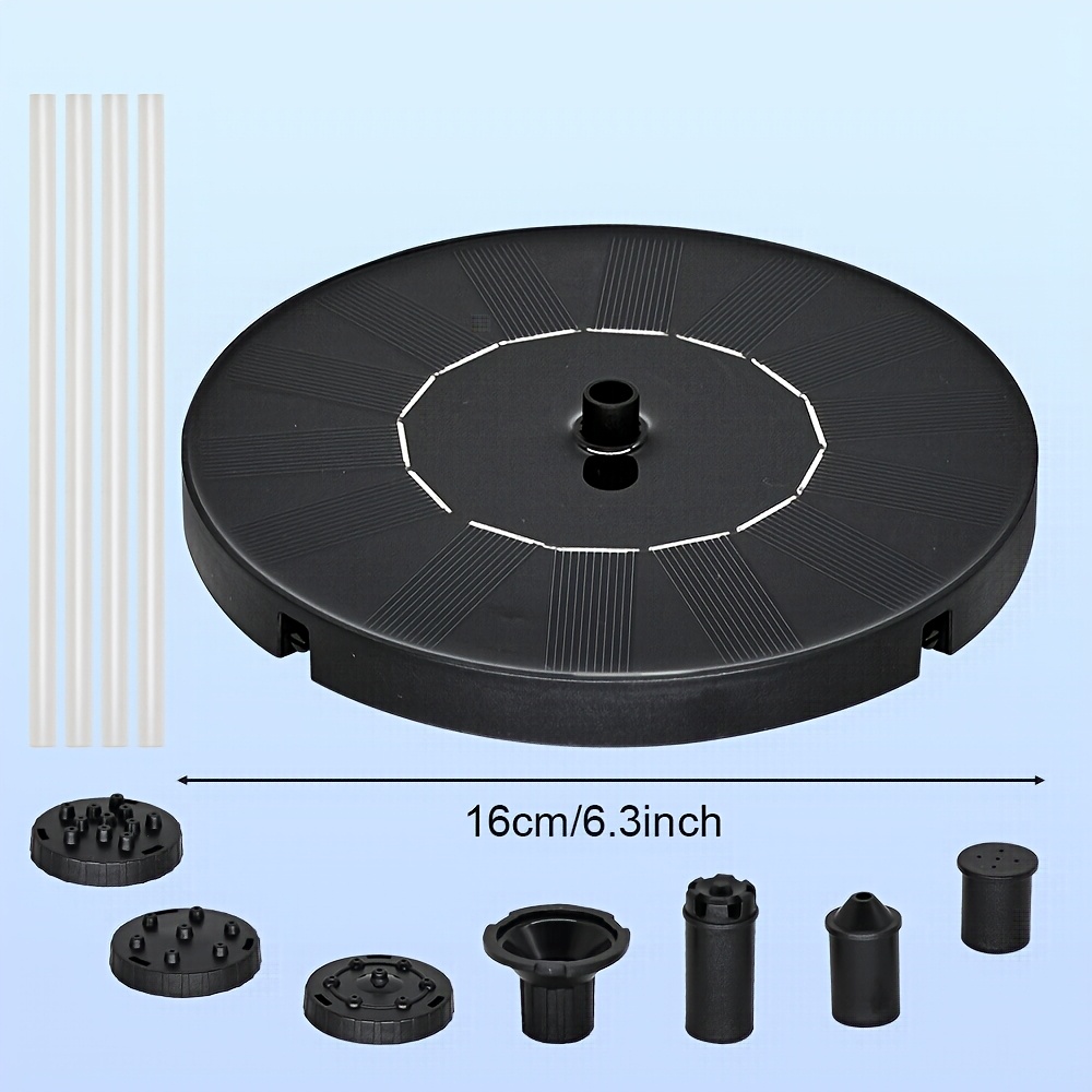 Enhance your outdoor space with this solar powered garden fountain pump featuring 6 interchangeable spray nozzles. Fully automatic and energy efficient, it operates using sunlight with no wiring required. Perfect for bird baths, ponds, fish tanks, and garden decoration.