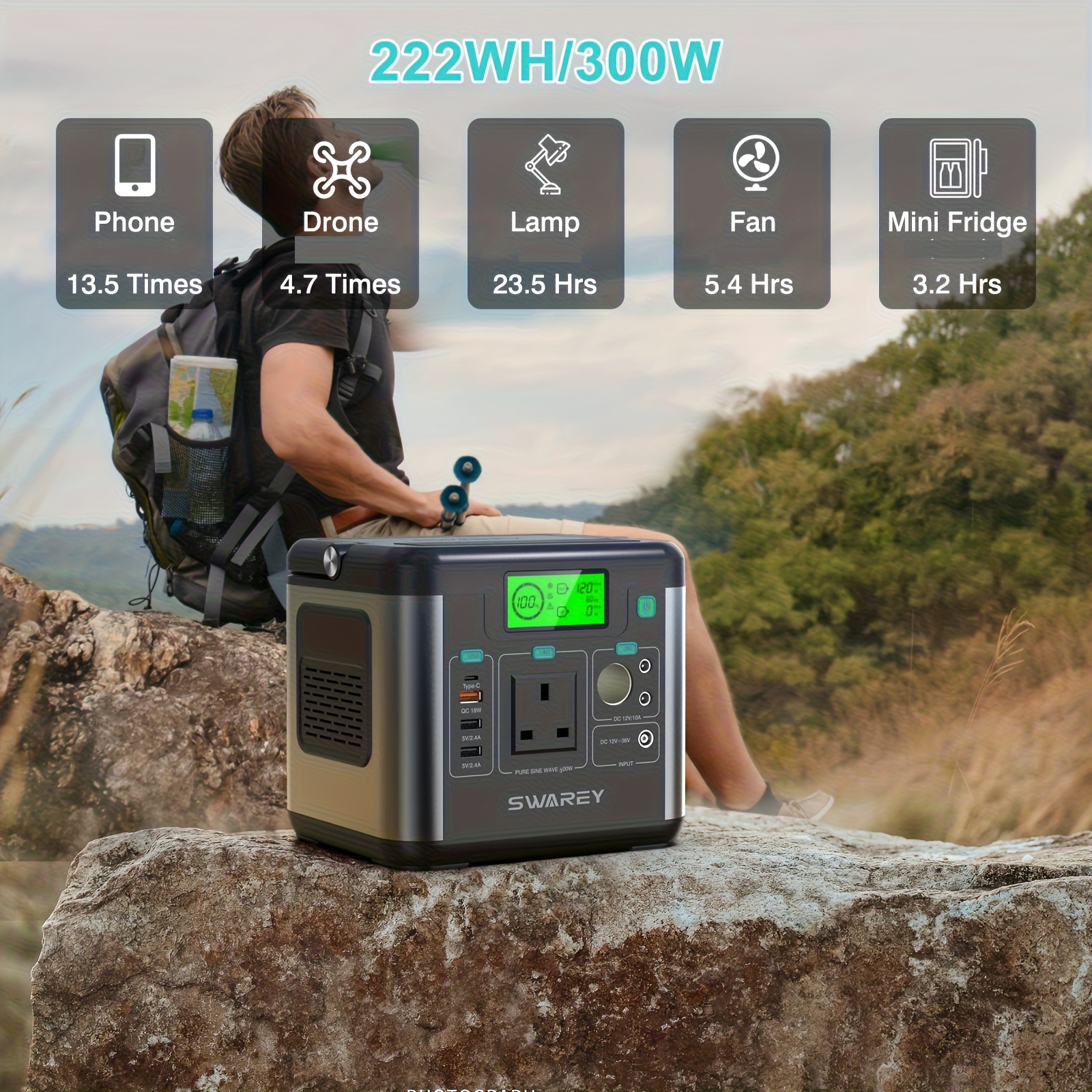 8 reviews for SWAREY 300W Portable Power Station with 100W Solar Panel (222Wh)