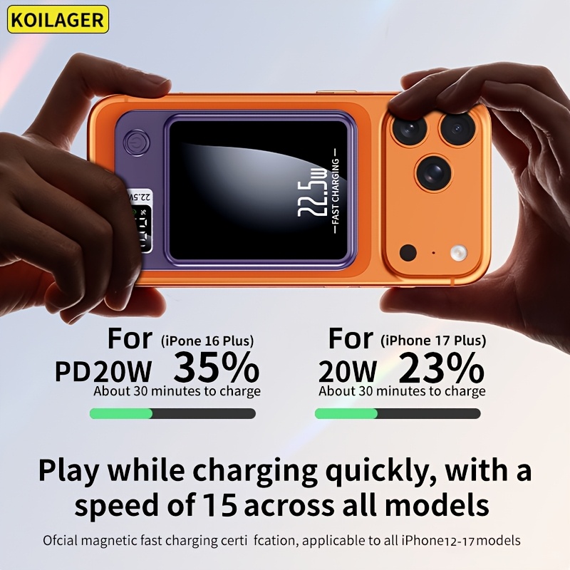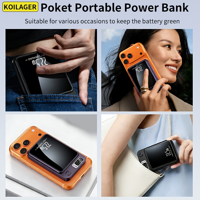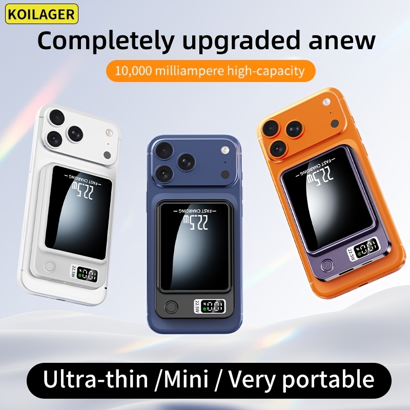 New Portable KOILAGER 10000Mah Power Bank, Ultra-Thin Magnetic Wireless Charging, 22.5W Super Fast Charging, PD20W Bidirectional Fast Charging, 15W Wireless Power Supply, LED Digital Display, Dual Usb/Type-C Ports