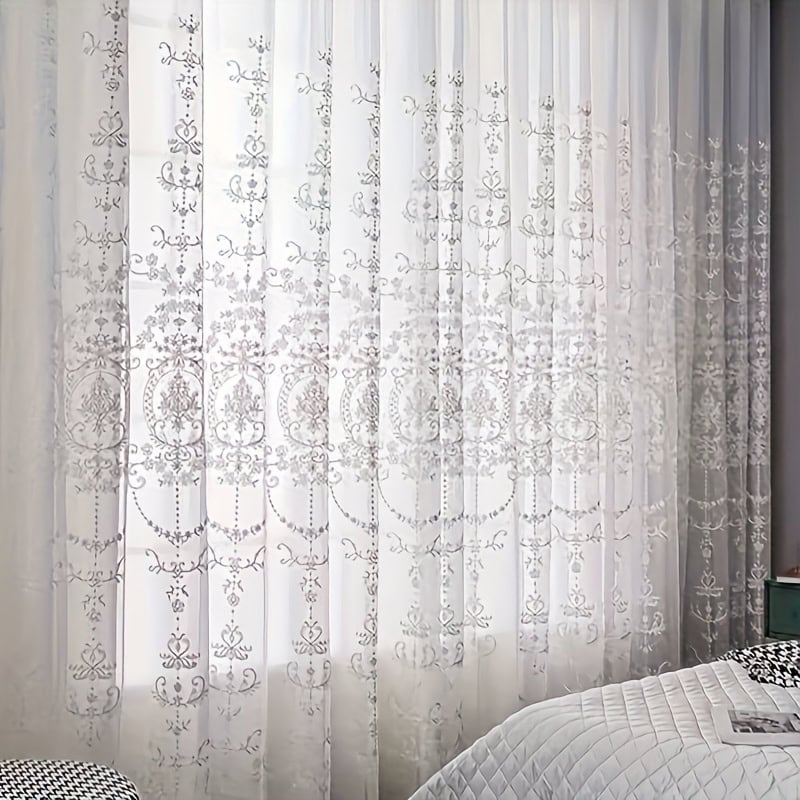 This embroidered sheer curtain combines elegance, simplicity, and functionality, making it a perfect addition to any home.
